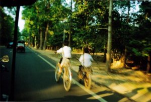 我们坐Tuk Tuk直奔吴哥去了,路上小孩子们已经放学拉?吴哥很小的孩子就骑这样大的自行车,就像后来
