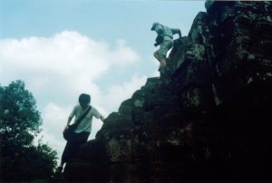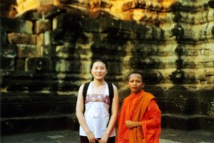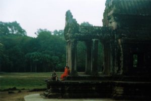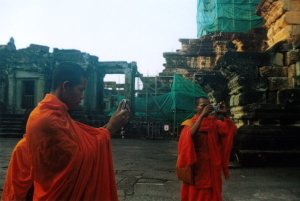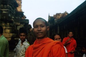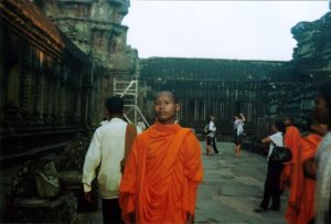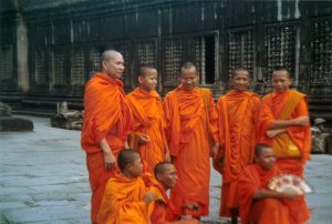 在吴哥逛到末了,碰到一群桔红僧袍的僧人,正在考虑要不要拍照他们,有一个就走上来对Ann说," Can I photo with you?"