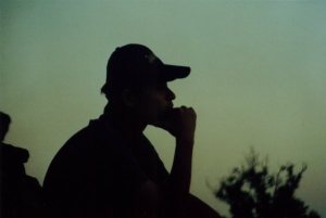 剪影照,被拍的时候望了这边一眼,继续很深沉的pose。